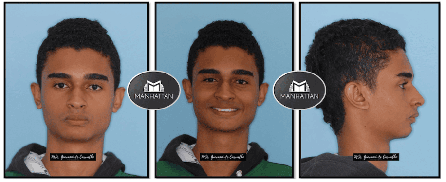 O perfil do rosto ficou mais equilibrado, sem a projeção excessiva dos dentes.