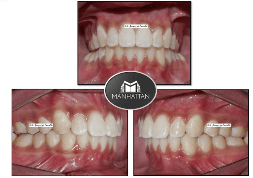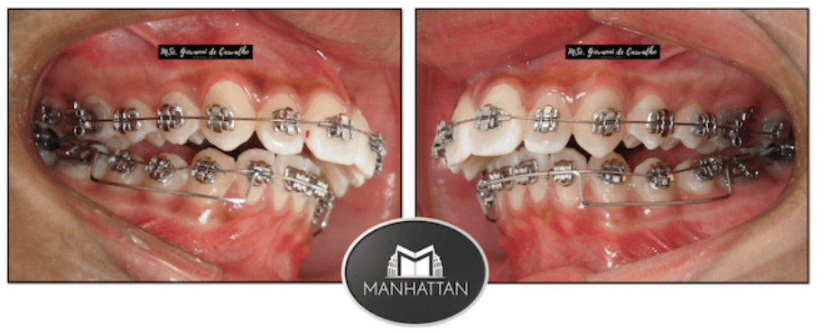 A combinação de elásticos entre as arcadas e os mini-implantes ajudou a corrigir a mordida profunda, trazer os dentes da frente para a posição ideal e, ao mesmo tempo, ajustar o posicionamento da mandíbula.